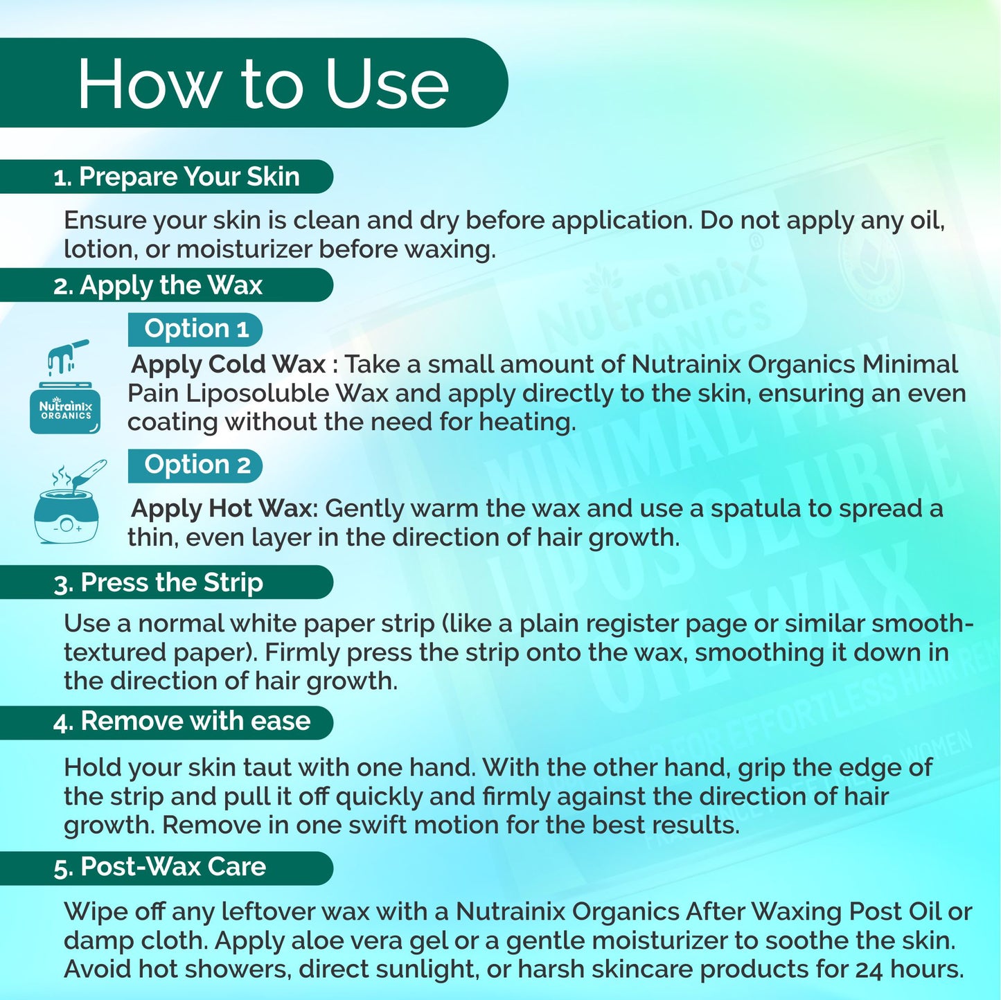 Tired of burns, sticky messes, and the dread of hot wax? Nutrainix Organics Minimal Pain Liposoluble Oil Wax redefines hair removal. As the only cold-applicable liposoluble wax on the market, it requires zero heat, grips hair (not skin), and delivers salon-smooth results in minutes. Infused with chamomile and aloe vera, this revolutionary formula is your passport to fearless, pain-free grooming—because self-care should empower, not traumatize
