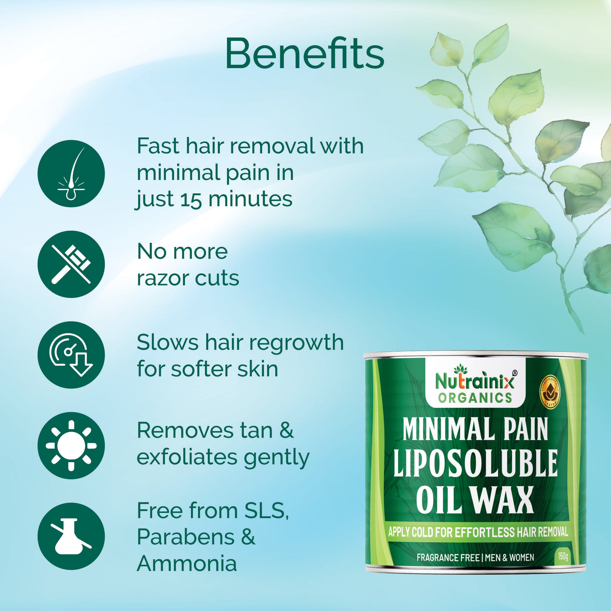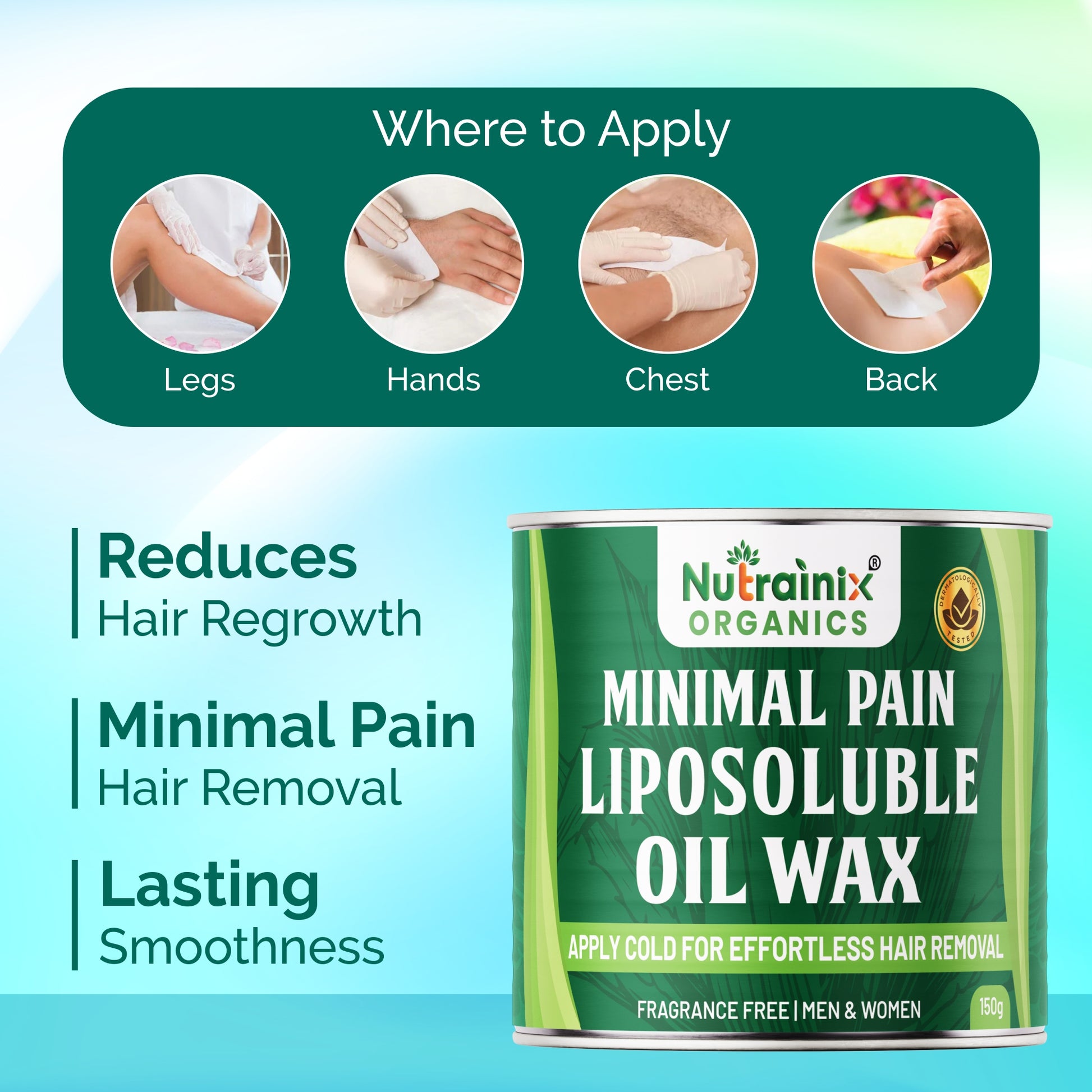 Tired of burns, sticky messes, and the dread of hot wax? Nutrainix Organics Minimal Pain Liposoluble Oil Wax redefines hair removal. As the only cold-applicable liposoluble wax on the market, it requires zero heat, grips hair (not skin), and delivers salon-smooth results in minutes. Infused with chamomile and aloe vera, this revolutionary formula is your passport to fearless, pain-free grooming—because self-care should empower, not traumatize