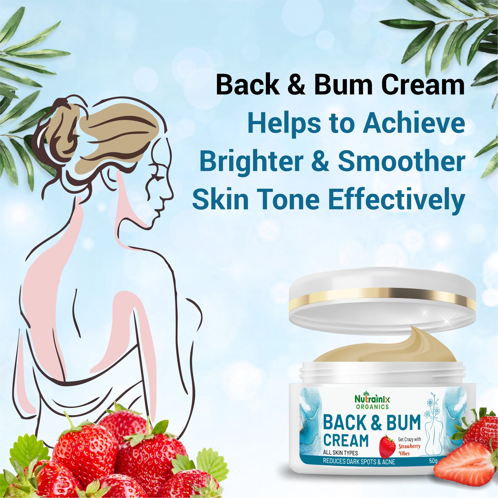 Your back and bum carry stories—of beach days, workouts, and moments you’ve hidden under layers. Nutrainix Organics Back & Bum Cream is here to rewrite those tales. This gentle yet potent formula dissolves stubborn dark spots, acne scars, and uneven tone, revealing skin so luminous and smooth, you’ll crave showing it off. Infused with nature’s brightest healers, it’s not just a cream—it’s your daily affirmation that every inch of you deserves to shine.