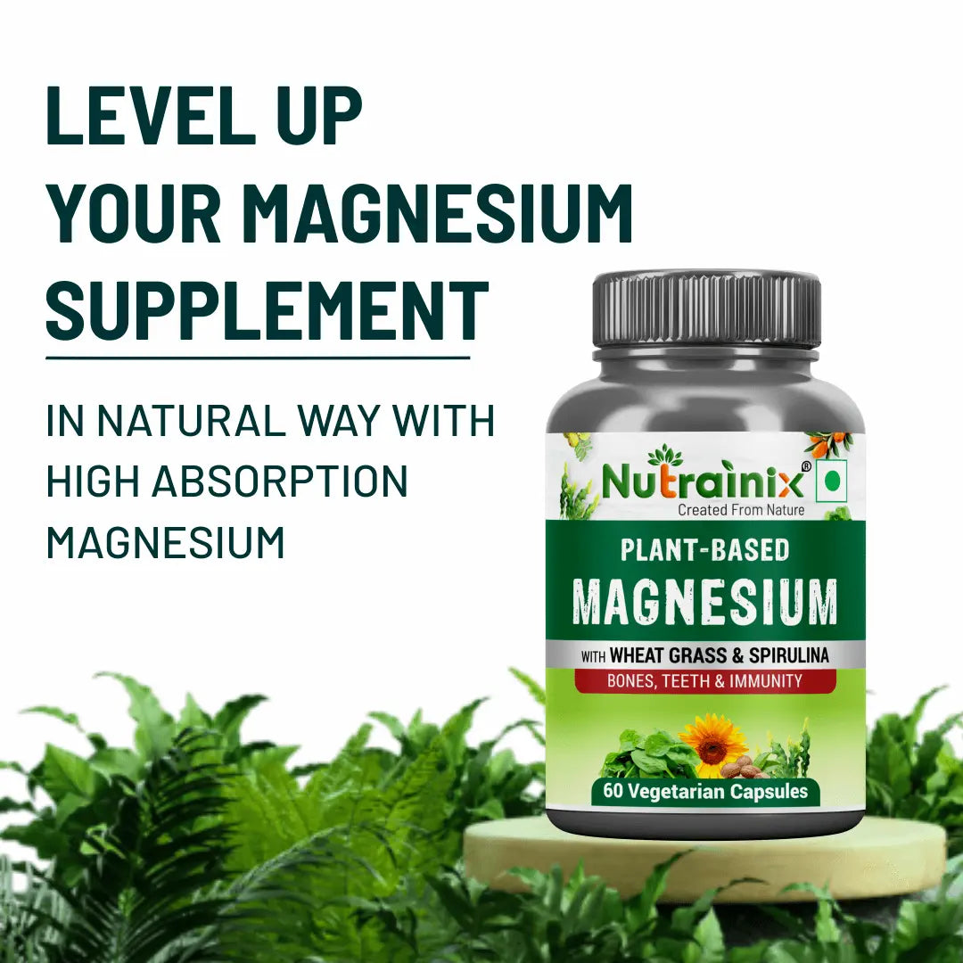 Nutrainix Plant-Based Magnesium, Supports Muscle Relaxation, Bone Health, Heart Wellness, Energy Boost & Vegan - 60 Vegetarian Capsules
